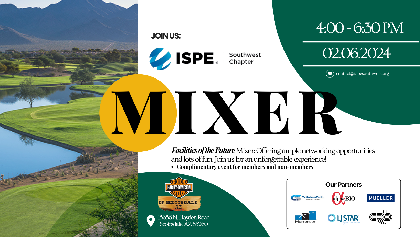 ISPE Southwest Chapter Phoenix Open mixer- Feb 6, 4-6:30 at Scottsdale’s world-famous Harley Davidson facility.